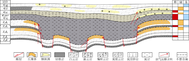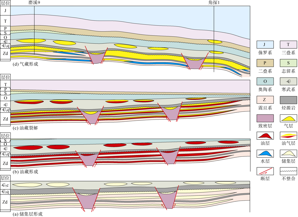 [6,7,8,9,10],提出了高石梯—磨溪古隆起和德阳—安岳克拉通内裂陷,古隆起和古裂陷控制了安岳大气田的形成与分布