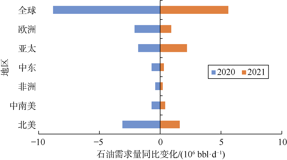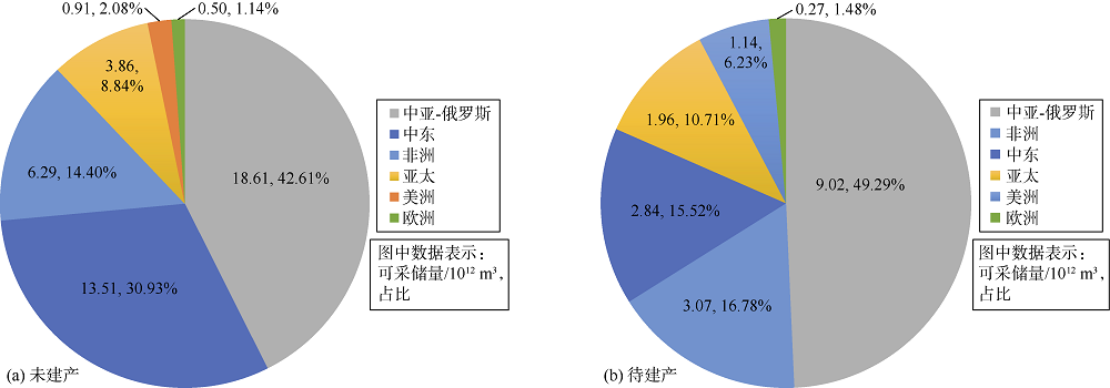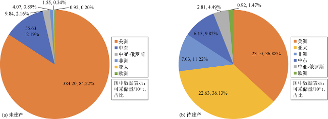 表2 2021年全球6大地区剩余可采储量统计表 |