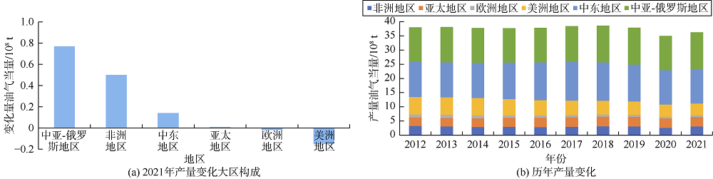 表10 2021年全球6大地区油气产量分布表 |