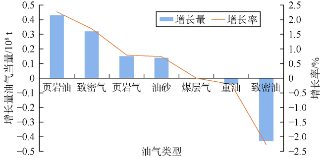 表8 不同类型油气技术剩余可采储量同比变化特征表 |