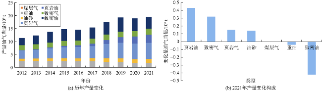 | 资源国 | 天然气产量/108 m3 | 2021年相对2020年 总变化量/108 m3 | 主要变化 天然气类型 | 2021年相对2020年 变化量/108 m3 | |