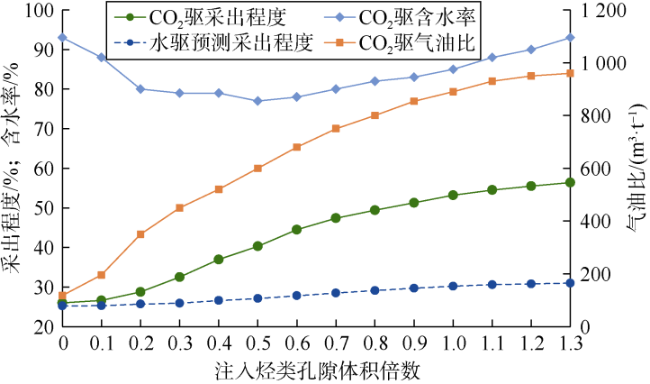 | CO2驱 开发阶段 | CO2注入 量/HCPV | 动态特征 |