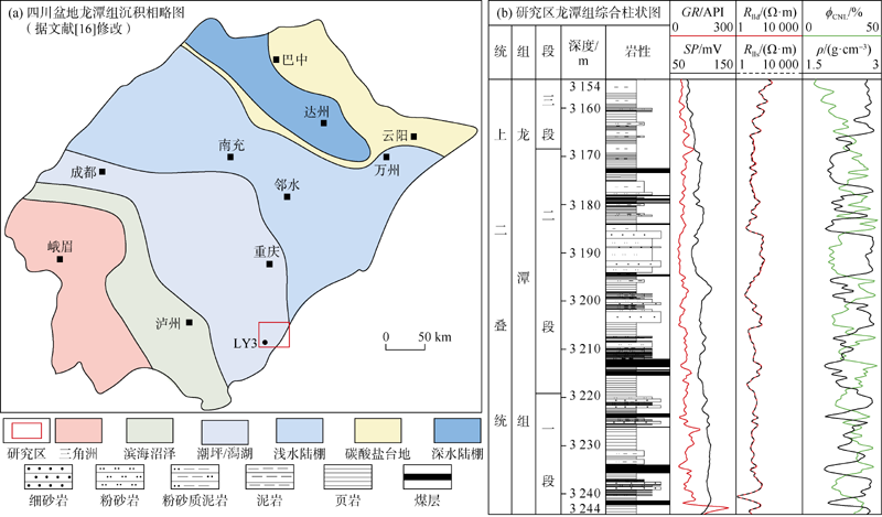 表4 研究区LY3井海陆过渡相和海相页岩优势岩相地质特征对比表(海相页岩数据据文献[20]) |