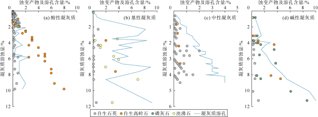 4.3 凝灰质溶蚀量与蚀变产物含量