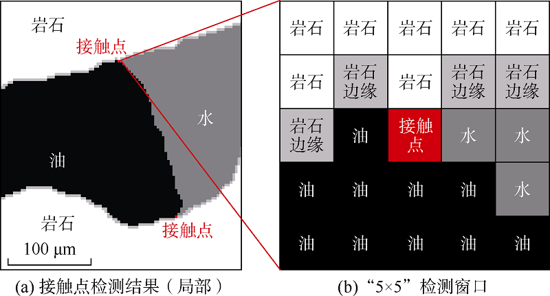 基于数字图像处理的孔喉内三相接触角自动测量方法