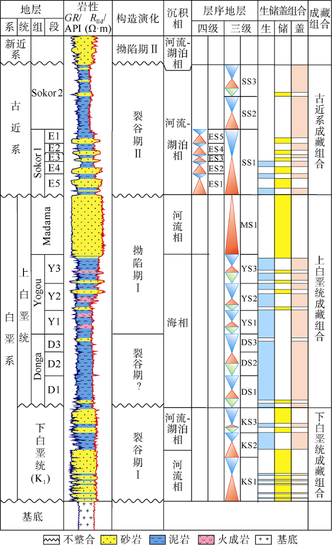 关键词: 尼日尔; Termit盆地; 海陆相裂谷叠合; 上白垩统Donga组; 古近系Sokor 1组; 构造演化; 源汇体系; 成藏特征; 勘探方向