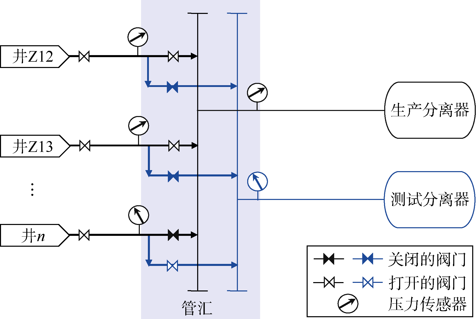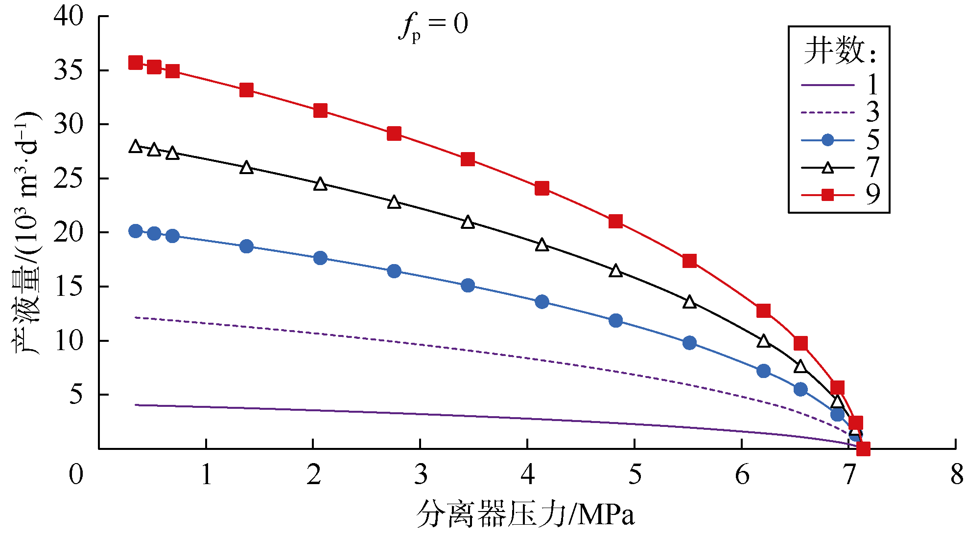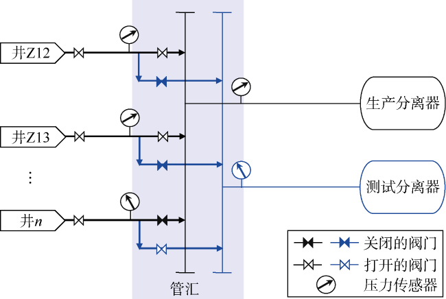 [14]。由此可知,一体化生产系统产能不一定等于100%可运行条件下的油井产量。还有些学者将一体化生产系统产能定义为资产的历史最大产量(对应日期称为一体化生产系统产能日,该日期生产网络内所有井均已投产,并且不存在漏失和延误等情况)。该定义的一个缺点是无法保证生产网络所有组成部分(如井和分离器)在一体化生产系统产能日都处于最佳状态。此外,该定义基于生产历史提出,没有考虑网络条件(如储集层压力、油井采油指数、油嘴状态、分离器设定点)随时间的变化及其对一体化生产系统产能的瞬时影响。针对一体化生产系统产能,没有统一的定义,并且缺乏明确的评估和预测程序,影响了这一指标的应用。因此,本文将Yadua等