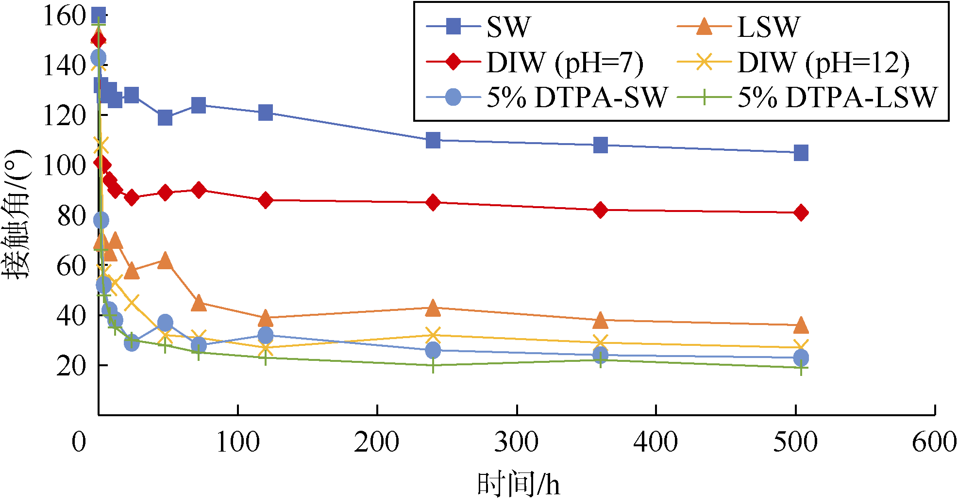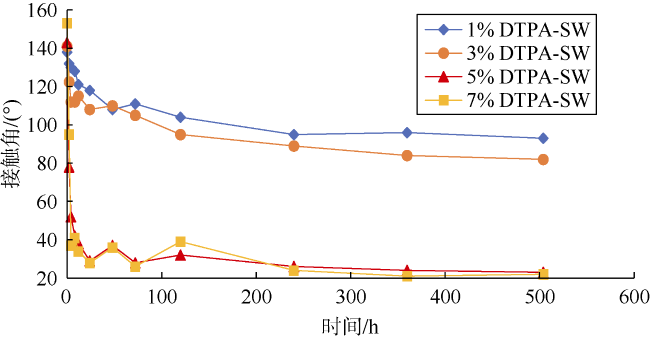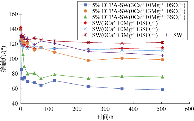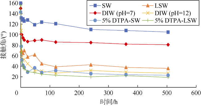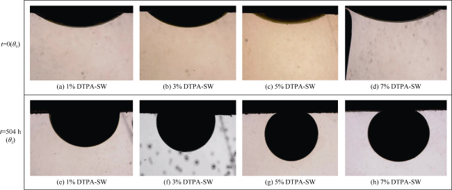 | 溶液 编号 | 溶液 | θi/ (°) | θ0/ (°) | θf/ (°) | 润湿性 变化指数 |