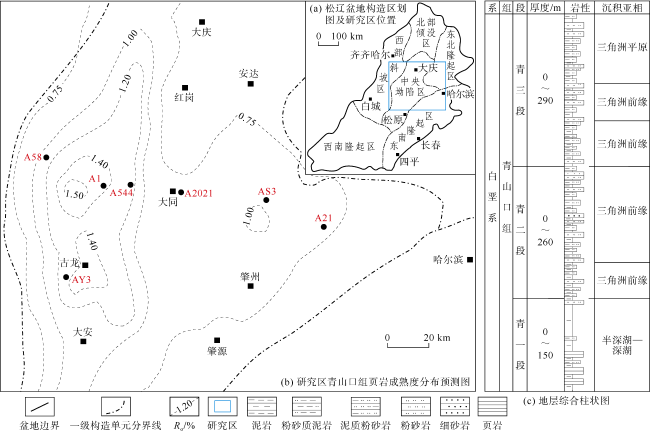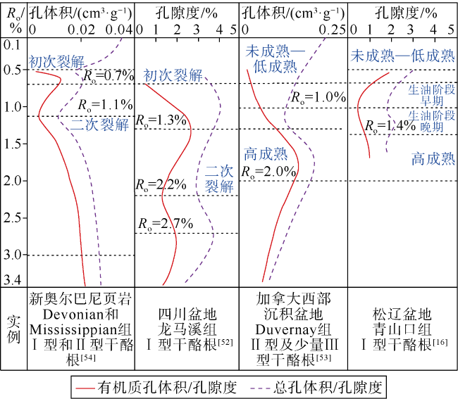 表3 松辽盆地青一段页岩样品Ro与Rob测量结果表 |