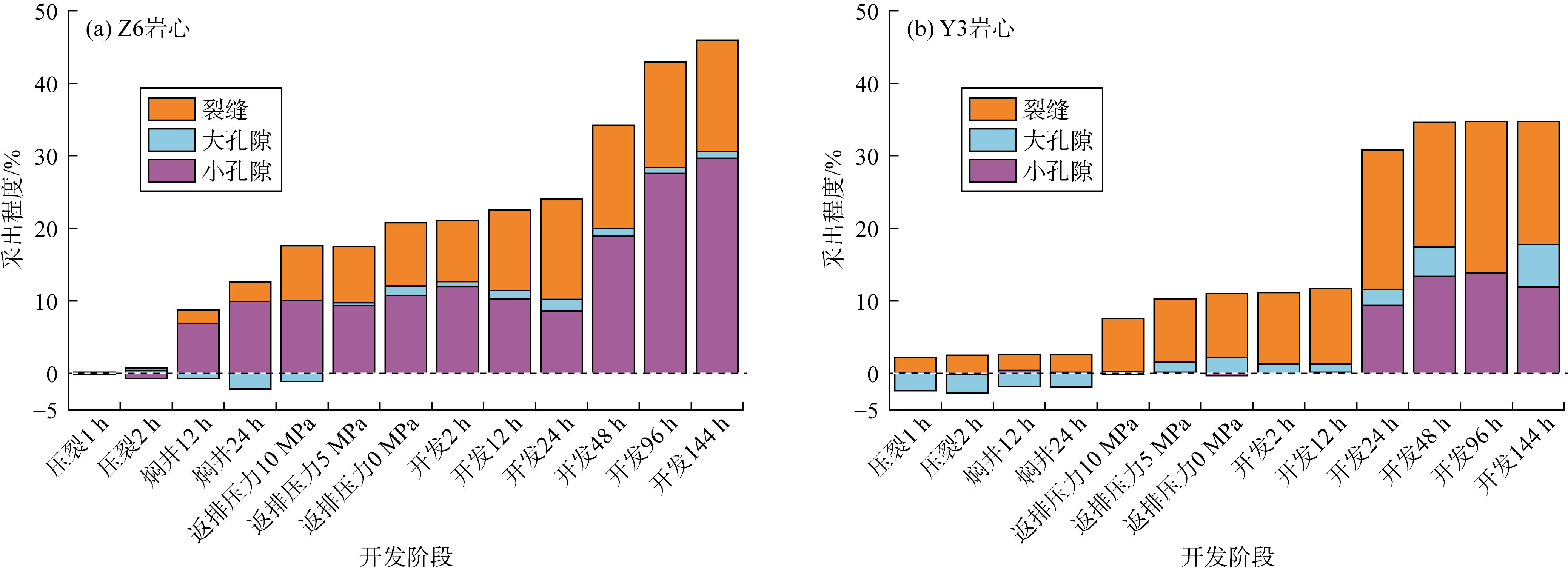 2.1 水驱油动态渗吸微观孔隙动用特征