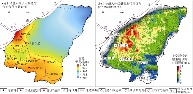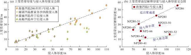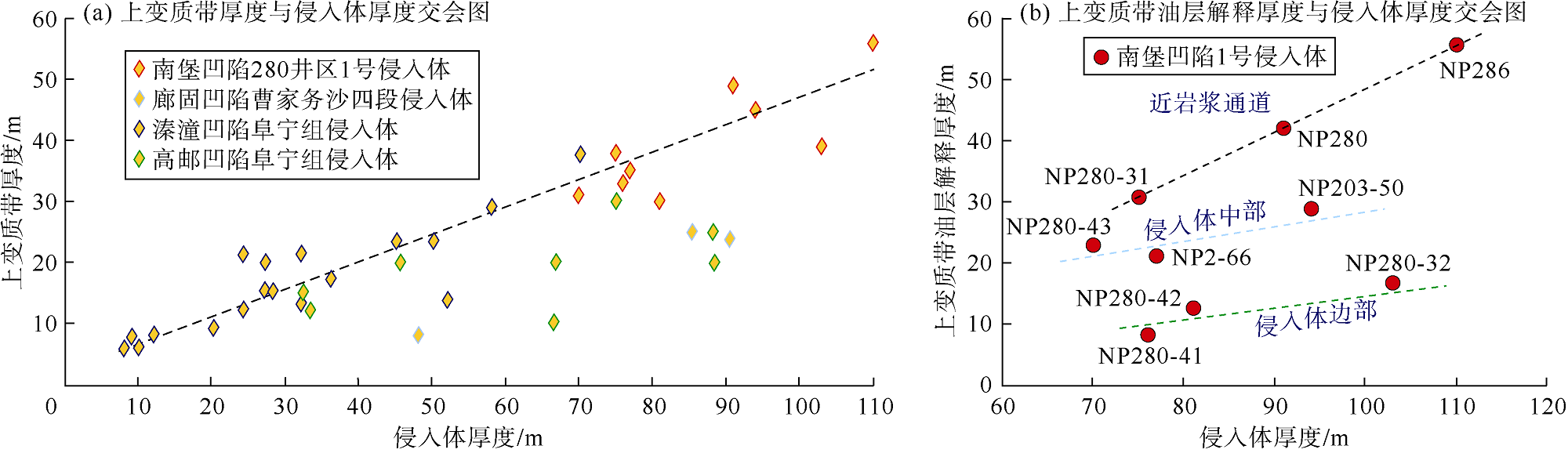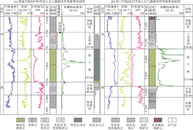 表1 Ⅰ号侵入体上、下变质带变质岩与未受侵入体影响的沉积岩岩心物性对比表 |