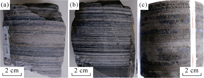 图7 Ⅰ号侵入体接触变质带中的变余结构和变余层理构造及典型热变质矿物薄片照片(Chs—空晶石;Crd—堇青石;Grt—石榴石;And—红柱石)(a)NP280-41井,4 186.22 m,变质泥岩中浅色斑点及沉积层理构成变余结构和变余层理构造,单偏光;(b)NP203-50井,4 173.04 m,变质细粉砂质泥岩中浅色斑点,具沉积层理的变余结构,单偏光;(c)NP203-50井,4 166.96 m,上变质带变质细粉砂岩中堇青石和空晶石,单偏光100倍;(d)NP203-50井,4 166.96 m,堇青石6个晶面清楚,正交偏光200倍;(e)NP280-41井,4 272.20 m,下变质带粉砂质泥岩中红柱石、石榴石、空晶石等,正交偏光100倍,加石膏试板;(f)NP280-41井,4 273.67 m,下变质带粉砂质泥岩中热变质矿物,红柱石、石榴石、空晶石等,正交偏光50倍 |