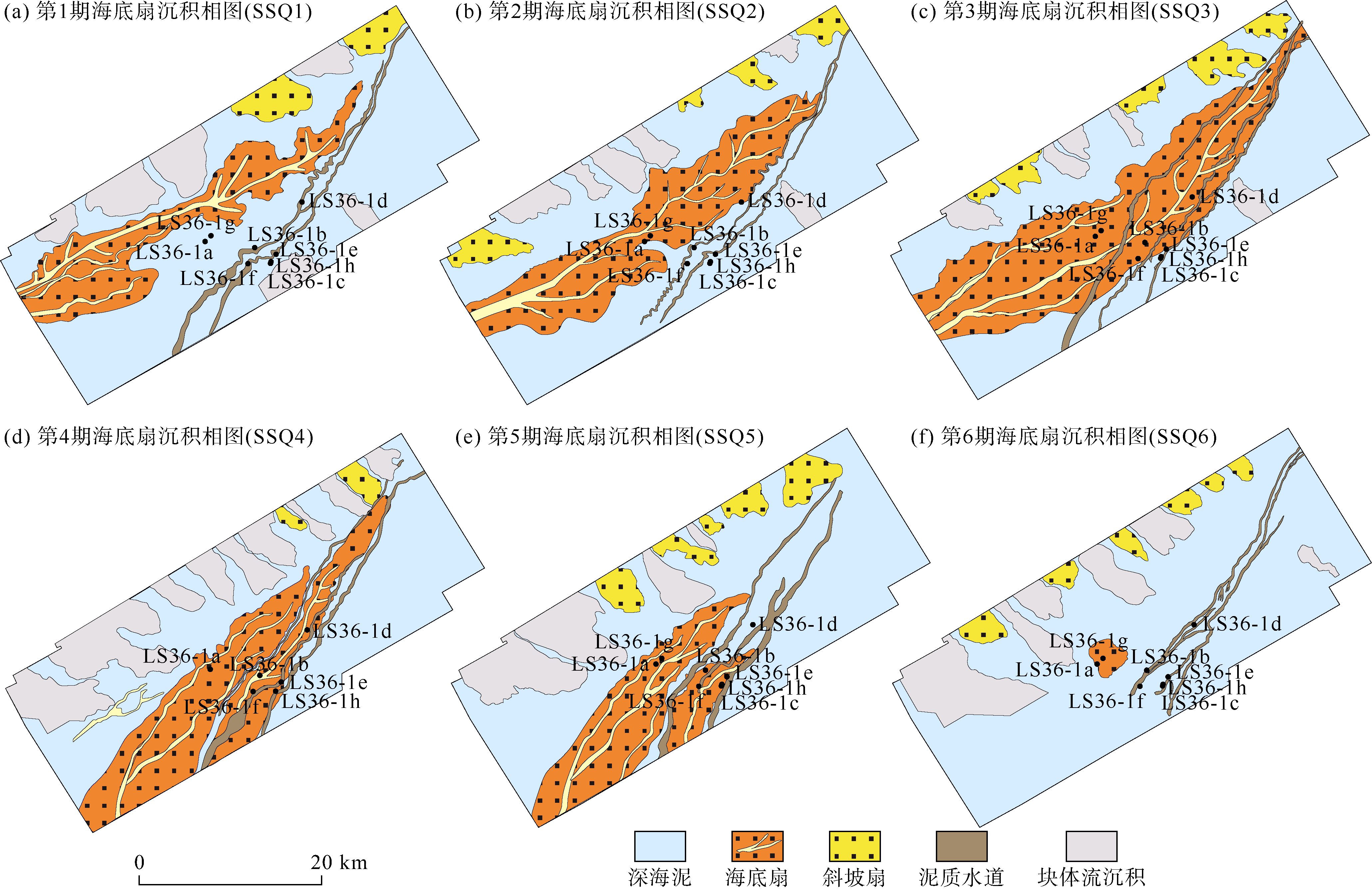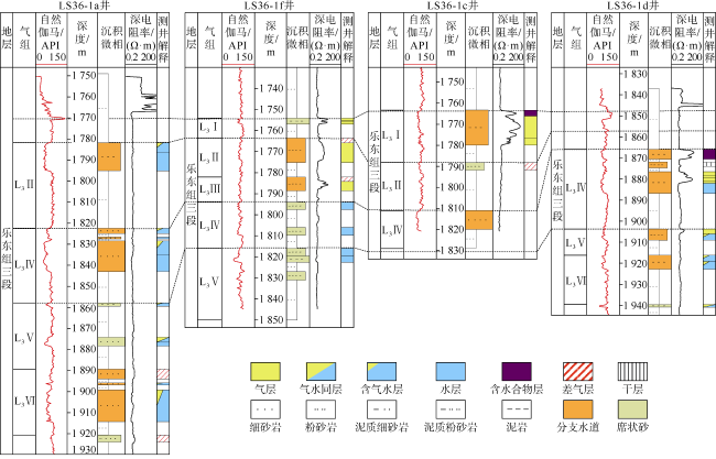 图3 琼东南盆地陵水36-1气田乐东组三段储层岩心宏微观特征(a)LS36-1c井,1 765.5 m,灰色粉砂岩,疏松,性软,未成型,微含细砂,见0.2~0.3 mm石英颗粒,分选较好,井壁取心照片;(b)LS36-1d井,1 880.3 m,灰色粉砂岩,疏松,性软,未成型,可见少量中砂—细砾颗粒,井壁取心照片;(c)LS36-1d井,1 952.0 m,灰色泥岩,呈块状,弱固结,成型较好,井壁取心照片;(d)LS36-1a井,1 902.0 m,颗粒粒级为细粒,石英为主,岩屑水洗后照片;(e)LS36-1a井,1 877.0 m,样品呈散砂状,无砂岩结构,主要为细砂,少量极细砂,颗粒以石英为主,岩屑薄片;(f)LS36-1d井,1 879.5 m,颗粒游离接触、点接触,弱压实,棱角—次棱角状,分选中—好,见丰富生物碎屑,井壁取心薄片 |