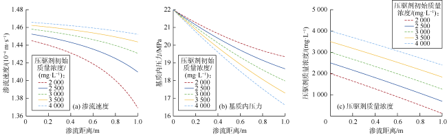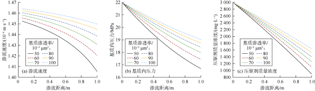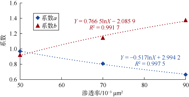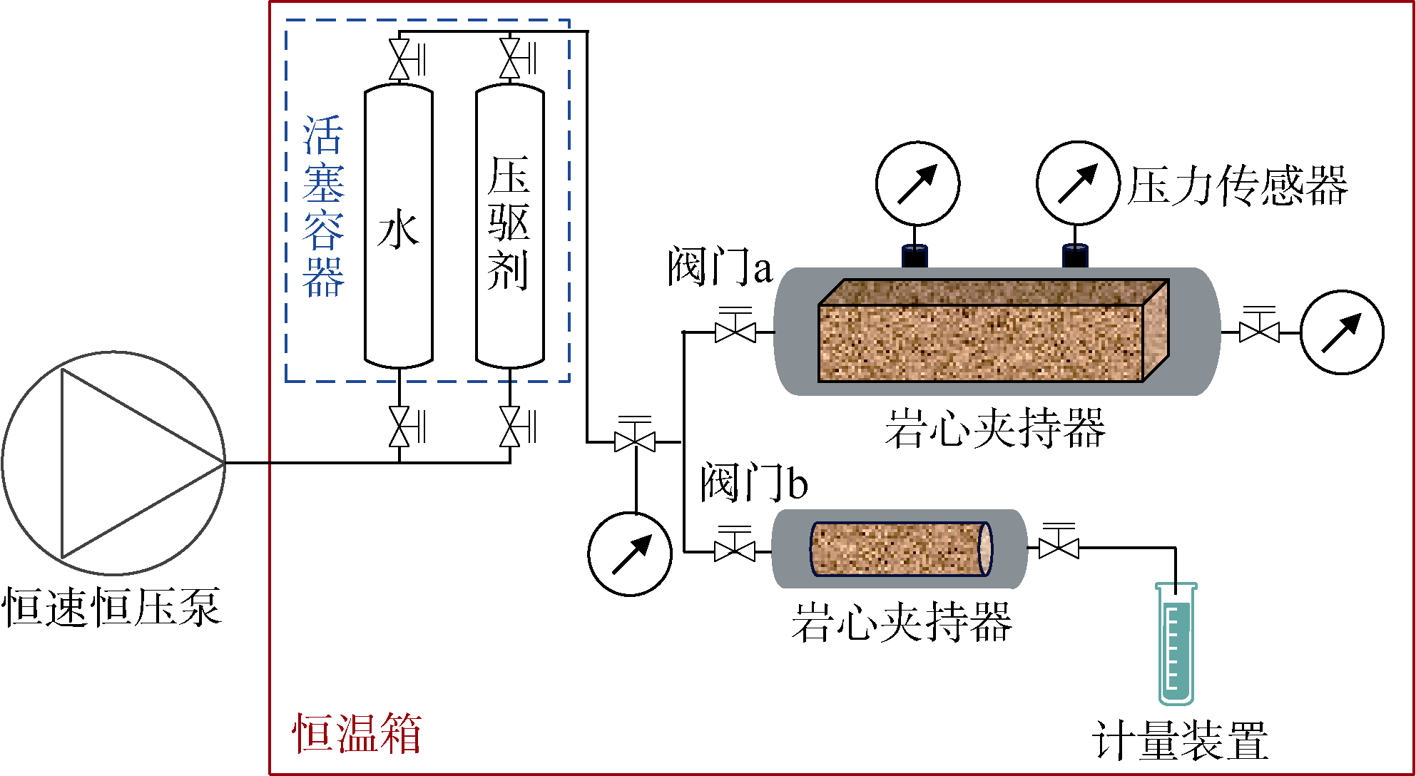 | 人造岩心编号 | 岩心长度/m | 直径/m | 渗透率级别/10-3 μm2 | 渗透率/10-3 μm2 | 孔隙度/% | 驱替压差/MPa | 围压/MPa |