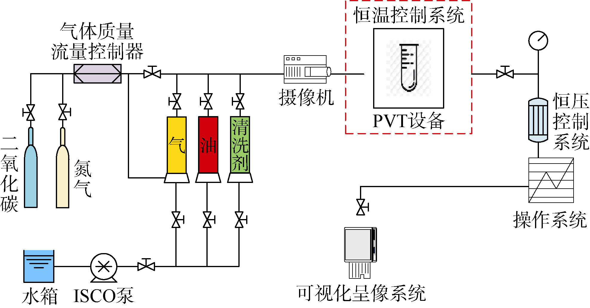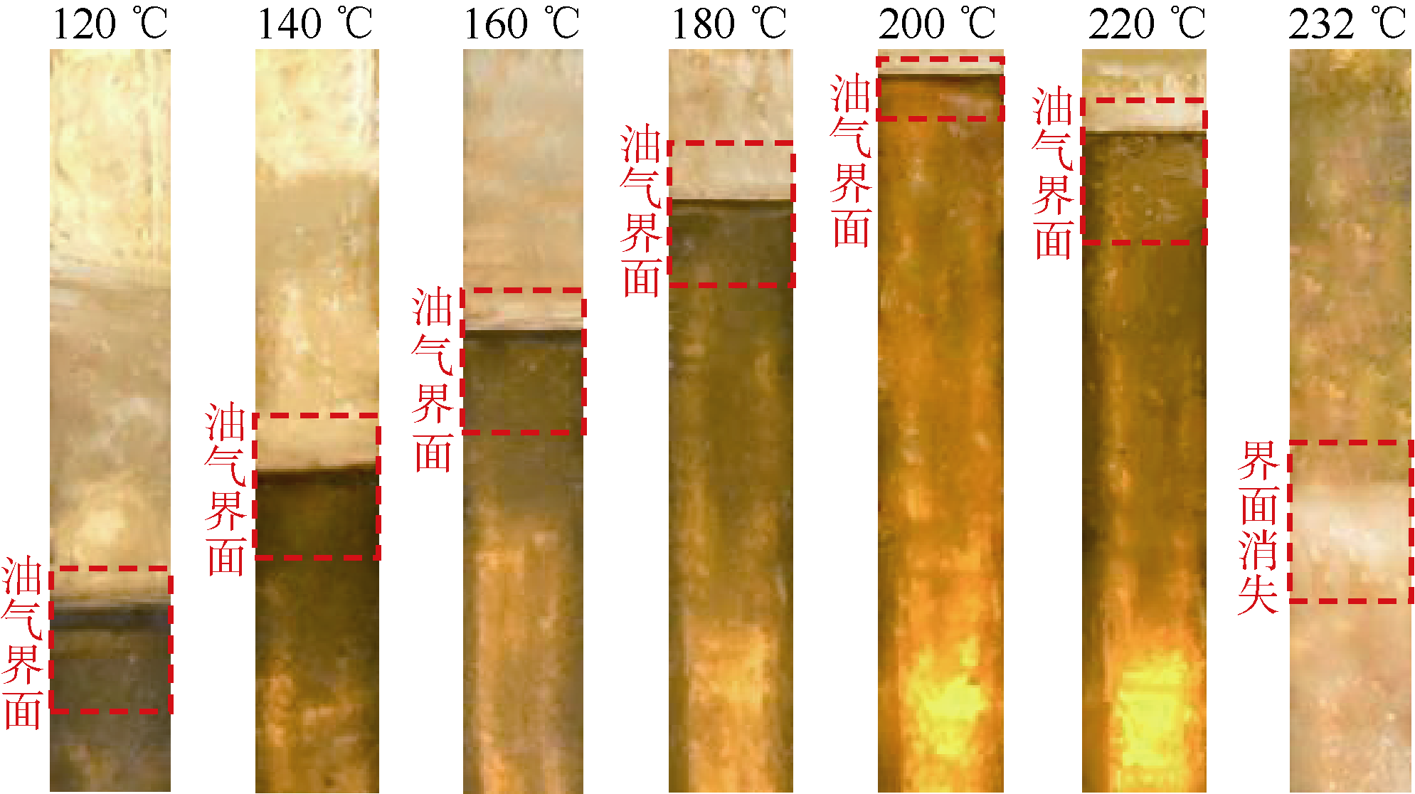 综合分析整个实验过程,15 MPa条件下逐级升温,PVT筒中流体经历以下变化过程,低温混相(100 ℃)→非混相(140~200 ℃)→高温混相(230 ℃)。由此可以看出,对于CO