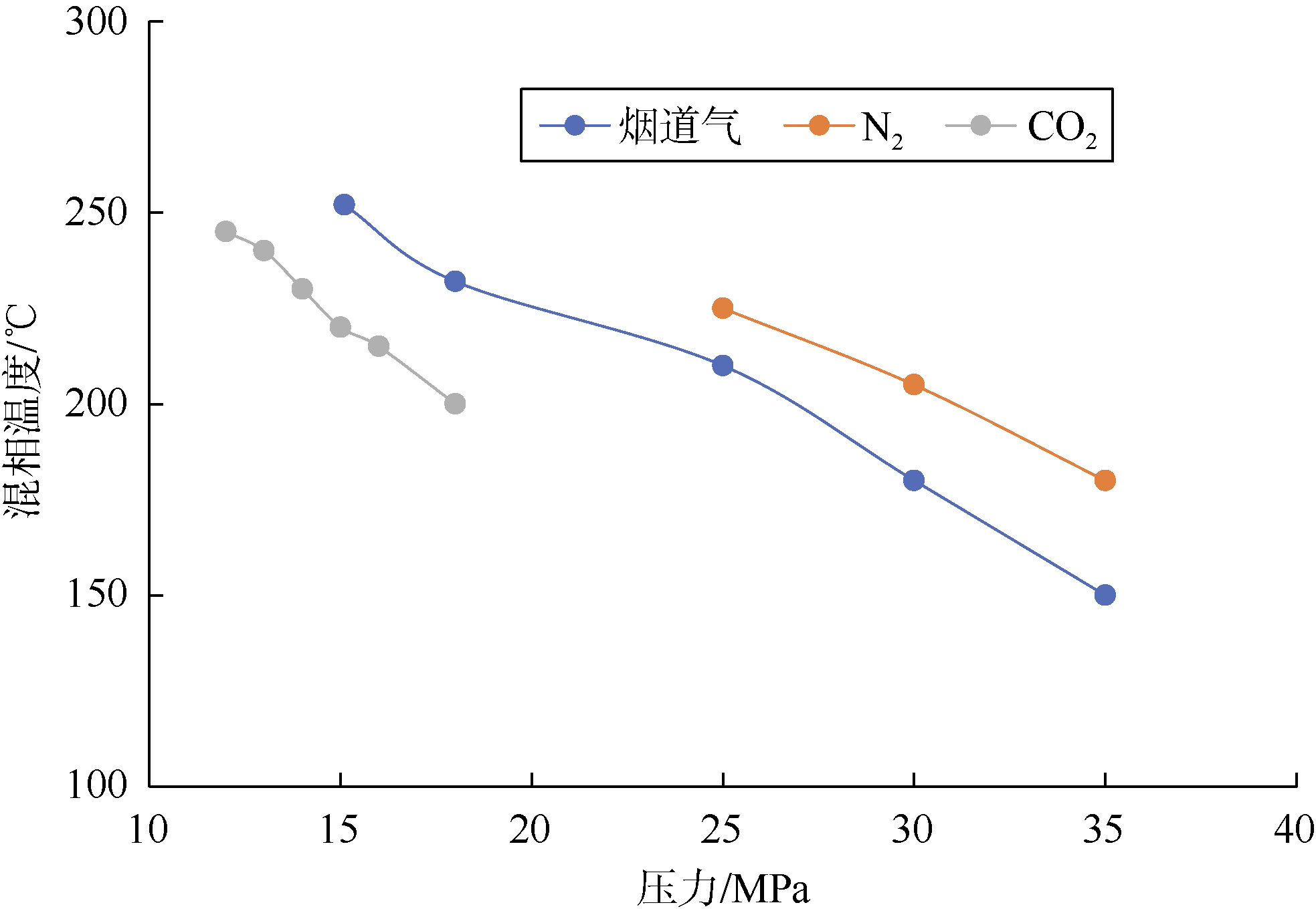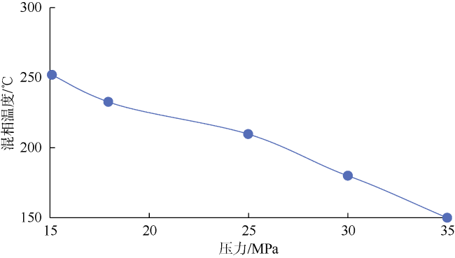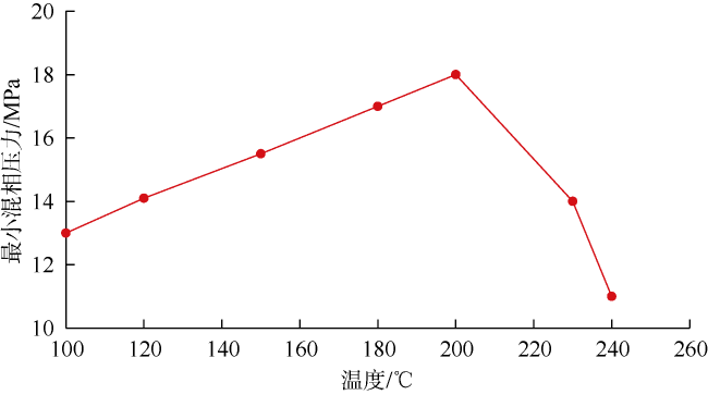 2-原油的最小混相温度,温度高于最小混相温度就能实现混相,温度进一步升高则能促进混相。对比分析可知:CO
