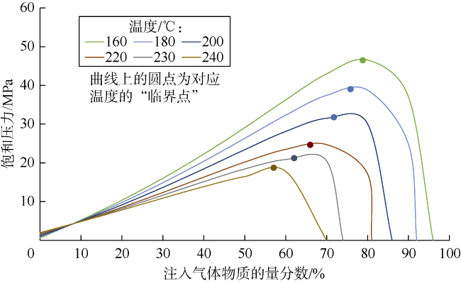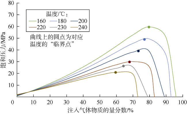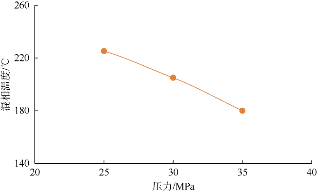 2-原油在两个温度区间表现为截然不同的混相状态,140 ℃以下的混相状态源于初始压力条件下CO