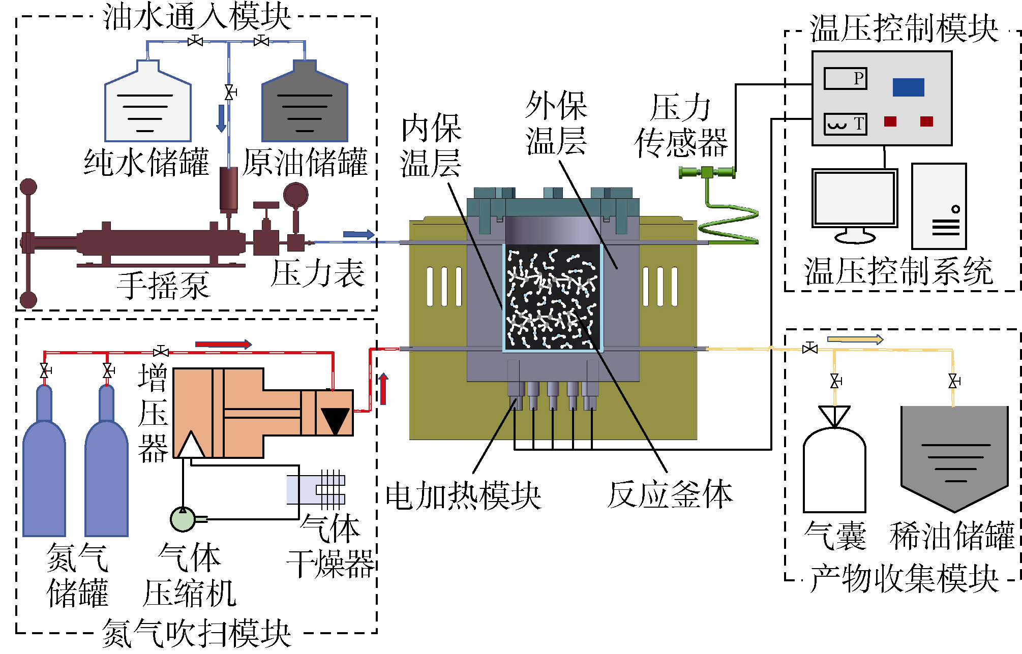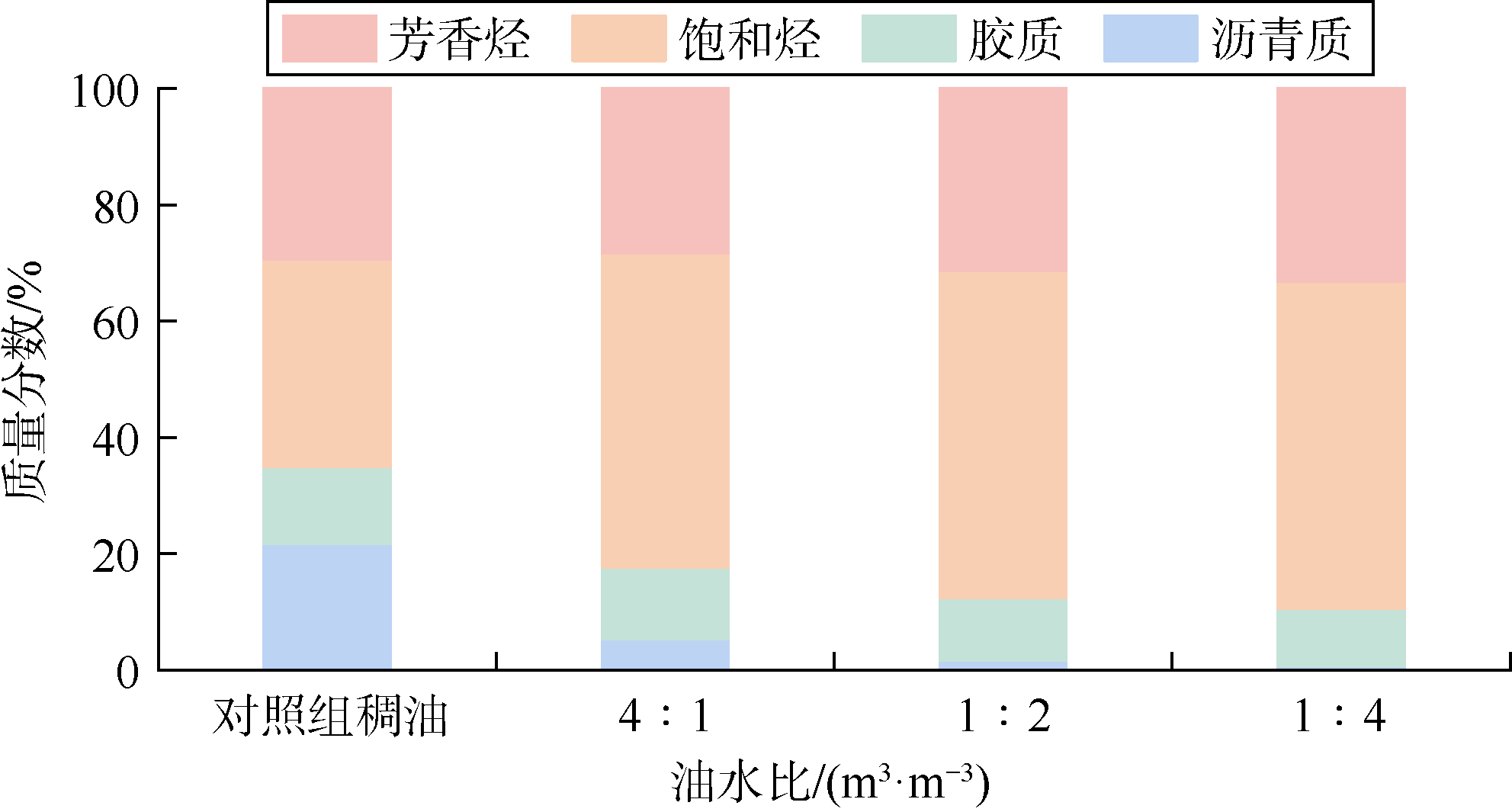 | 反应 环境 | 实验 编号 | 压力/ MPa | 温度/ ℃ | 时间/ min | 油水比/ (m3·m−3) | 样品测试内容 |