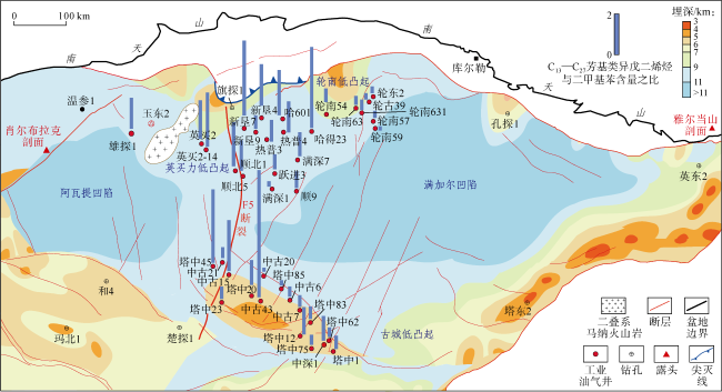 26TT值大于1.0的特征,指示奥陶系烃源岩来源的海相沉积环境特征;而部分轻质油和凝析油表现出高丰度C