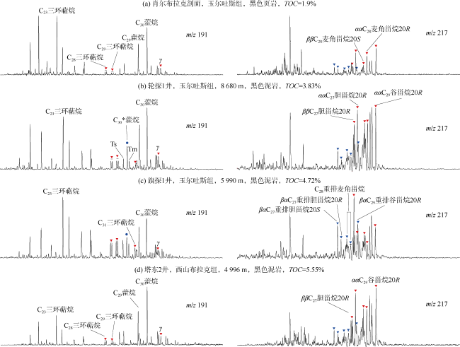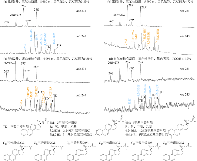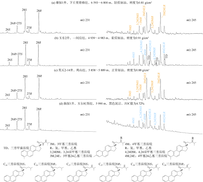 24TeT)的相对分布已被广泛应用于区分陆源与海相有机质输入,对比原油与烃源岩亲缘关系,破译烃源岩岩性特征