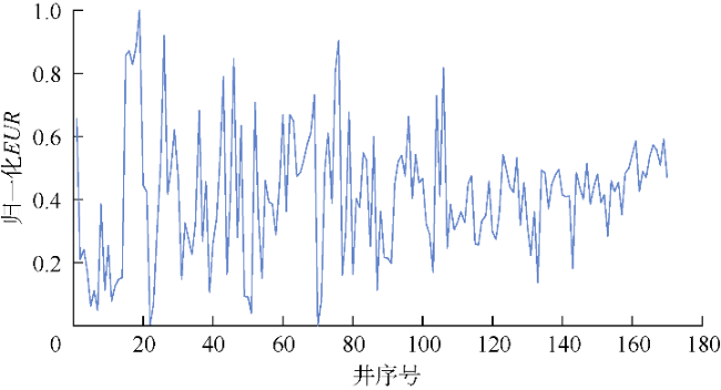 根据数据类型可将吉木萨尔凹陷页岩油现场数据资料分为3类:地质、工程和生产数据。这些海量数据离散化严重,直接应用困难,建立数据库能够高效管理并调用数据资料,为压裂参数智能优化提供数据基础。测试产量、首年累计产量及单井预测最终可采储量(