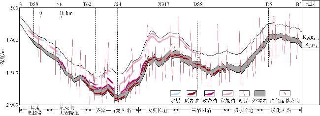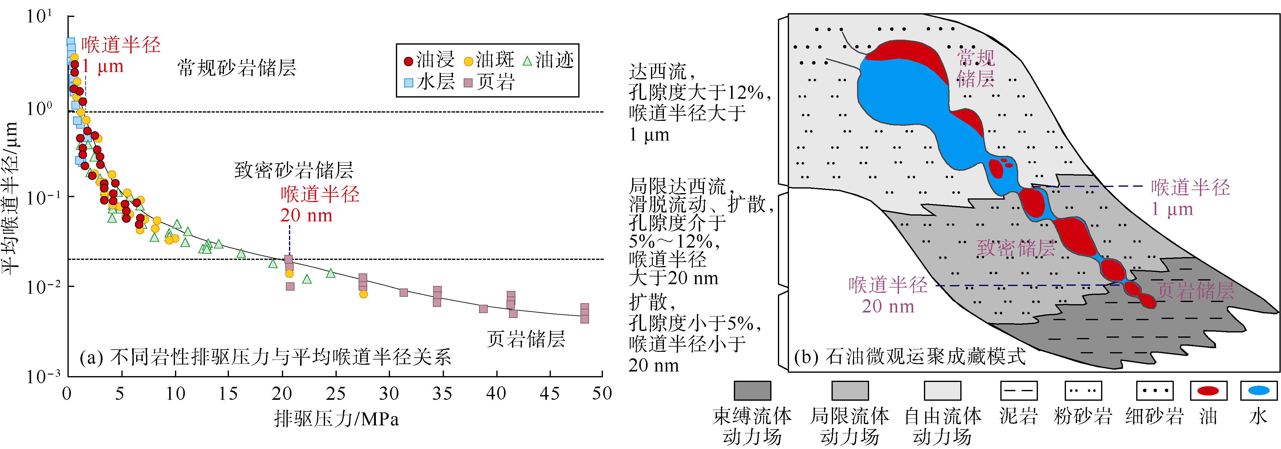 基于地震、钻井及测井等资料,结合油气勘探实践,开展松辽盆地北部白垩系青山口组油气有序分布特征、有序分布成因以及差异富集模式研究。研究表明:①松辽盆地北部青山口组常规—非常规油气有序共生,平面上,自盆地边缘向中心常规油、致密油、页岩油有序成藏;垂向上,自下向上依次发育页岩油、致密油、常规油;②构造-沉积耦合通过控制沉积相带的分异和成岩作用,影响储层的岩性和物性变化,进而控制着常规—非常规油气空间有序分布;③烃源岩生烃演化、断层启闭性和储层致密化的耦合,控制了青山口组常规—非常规油气的有序共生格局;④储层物性的有序变化控制形成不同油气类型的动力场,进而控制着油气的有序聚集;⑤不同类型油气富集主控因素存在差异,源上常规油气成藏的主控因素为浮力驱动、断裂连通、砂体输导,圈闭富集;近源致密油气富集的主控因素为超压驱动、断裂连通、砂体多层叠置,油气准连续分布;源内页岩油富集的主控因素为原生源储、自封闭作用控制,油气原地保存或生烃增压驱动下微运移聚集。勘探实践表明,研究成果可以有效指导松辽盆地北部青山口组常规—非常规油气资源的整体部署与立体勘探。