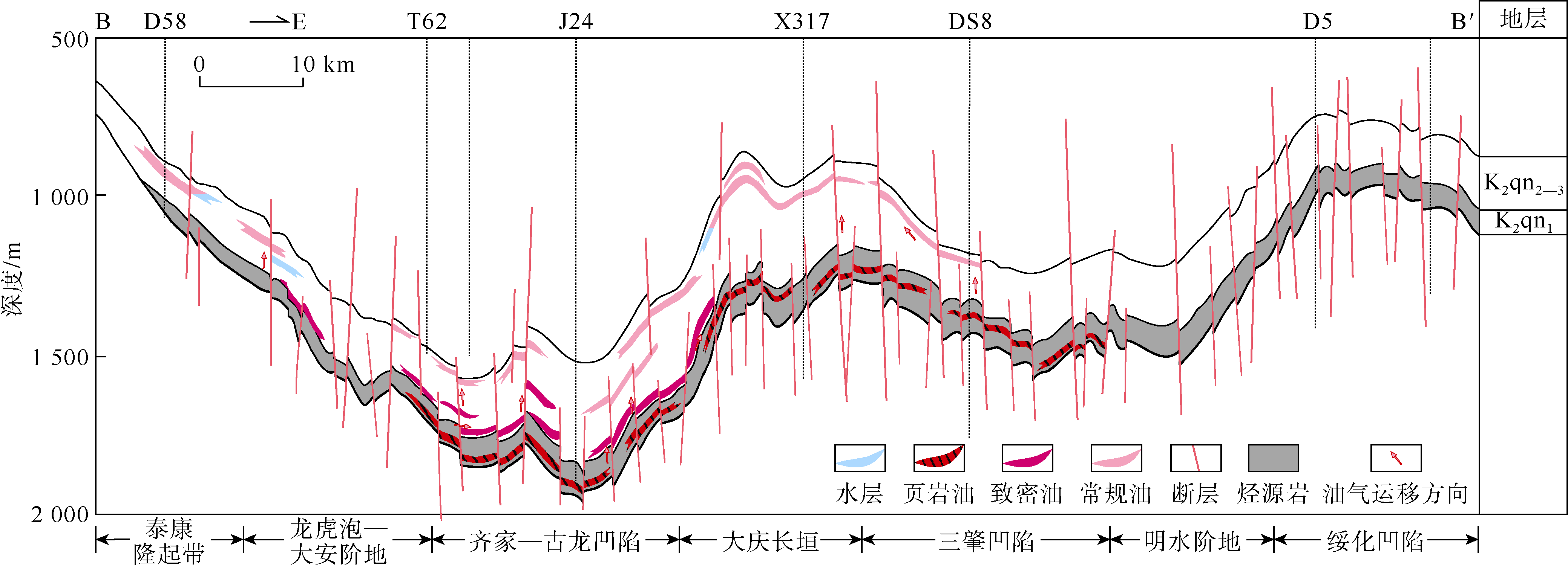 松辽盆地北部白垩系青山口组常规—非常规油气分布的有序性与差异富集模式