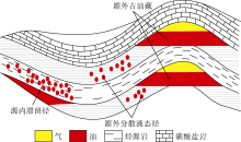 2005年, 赵文智等根据气源岩在不同阶段的生气动力学、生气组分及生成的不同成因天然气, 建立了沉积有机质的接力成气模式。指出沉积有机质接力生气的过程包括生物气、未成熟过渡带气、干酪根降解气及液态烃裂解气, 并揭示了分散液态烃的成藏地位[6, 12]。