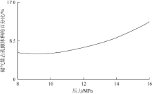 压力在包括气体在内的多相系统渗流中起主要作用[13]。本文实验中天然气和水组成了非混相驱替流体。压力增加会使天然气的密度和黏度增加, 则驱替流体的性能改善。由图5可知, 储气量随着压力的增加而显著增加, 通过将压力从8 MPa增加到16 MPa, 可以使岩心中储气量占孔隙体积的百分比从5.78%提高到12.64%。